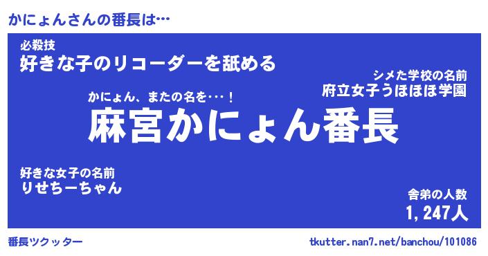 | 意味不明あだ名 | 『ペロリンかにょん』『永久保存かにょん』 |