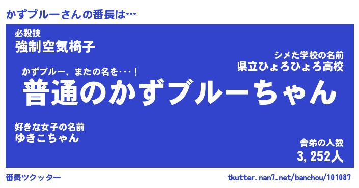 | 肩書あだ名 | 『かずブルー店長』『かずブルー国家主席』 |