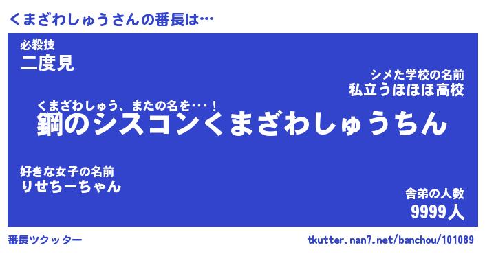 | ヒーロー風カッコイイあだ名 | 『スーパークマザワシュウ』 |