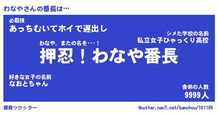 | 意味不明あだ名 | 『ペロリンわなや』『わなやフォーエバー』 |