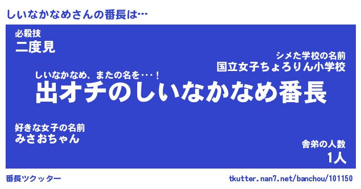 | 男性向けラノベタイトル風あだ名 | 『しいなかなめの憂鬱』 |