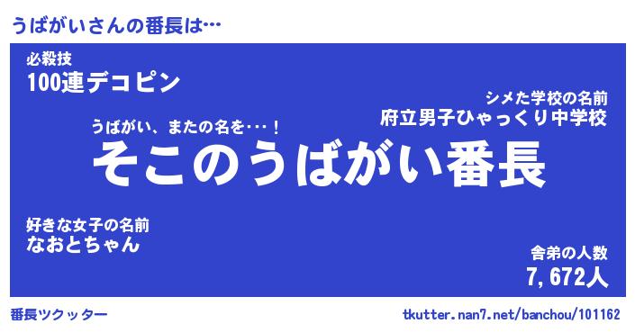 | 2回繰り返すあだ名 | 『うばうば』『ううばば』『ぬるぬる』 |