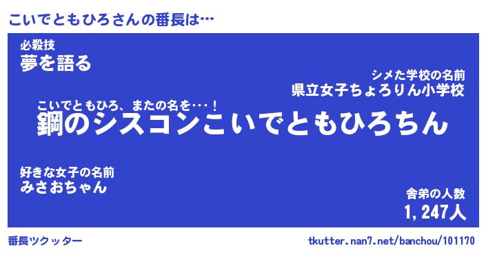 | 恥ずかしいあだ名 | 『プリティーこいでともひろ』『こいちん』 |