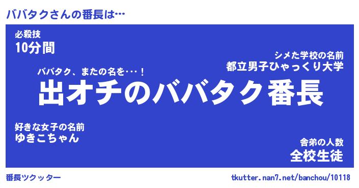 | 意味不明あだ名 | 『ペロリンババタク』『永久保存ババタク』 |