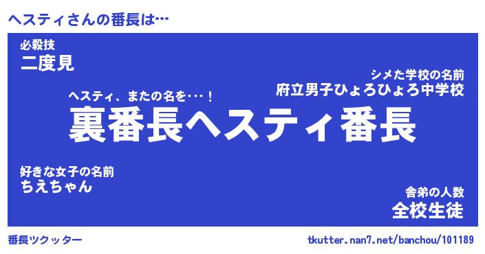 | 意味不明あだ名 | 『ペロリンヘスティ』『永久保存ヘスティ』 |