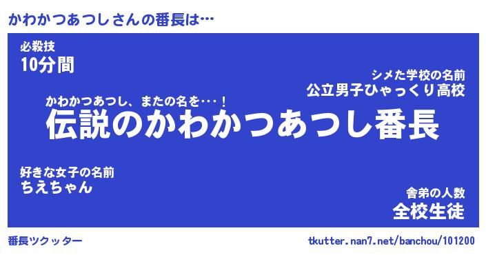 | ヒーロー風カッコイイあだ名 | 『スーパーカワカツアツシ』 |