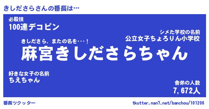 | 2回繰り返すあだ名 | 『きしきし』『ききしし』『あんあん』 |