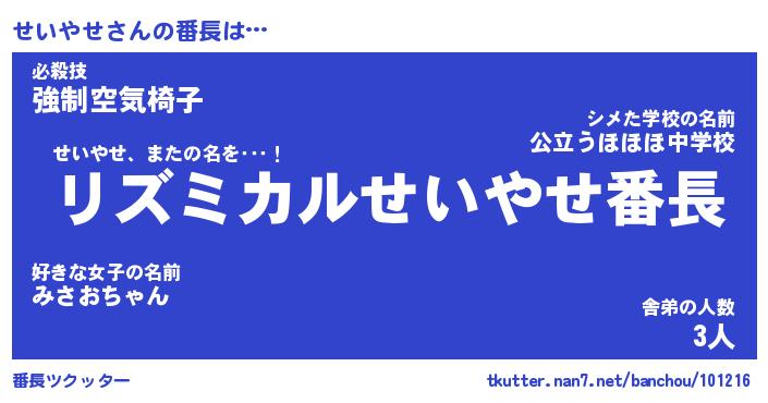 | 2回繰り返すあだ名 | 『せいせい』『せせいい』『おらおら』 |