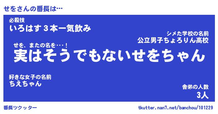 | ヒーロー風カッコイイあだ名 | 『スーパーセヲ』『ウルトラせをマン』 |
