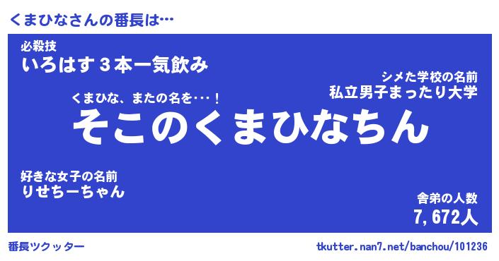| ヘコむあだ名 | 『くまにー』『つくし』『くまぷりん』 |
