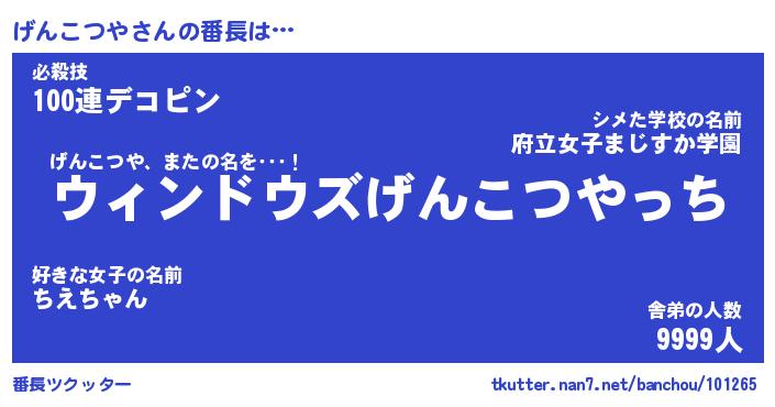 | ポケモン風あだ名 | 『ゲンチュウ』『ゲンコダネ』 |