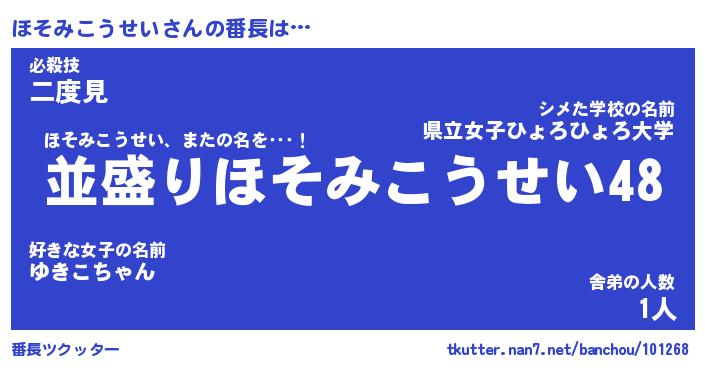 | 肩書あだ名 | 『ほそみこうせいCEO』 |