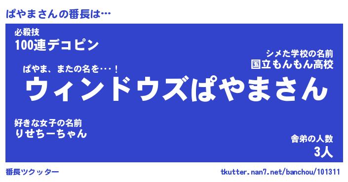 | ヒーロー風カッコイイあだ名 | 『スーパーパヤマ』『ウルトラぱやまマン』 |
