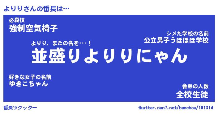 | ヒーロー風カッコイイあだ名 | 『スーパーヨリリ』『ウルトラよりりマン』 |