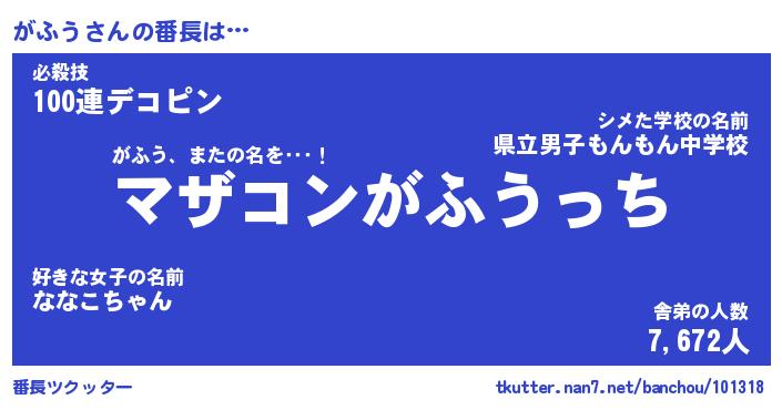 | ヘコむあだ名 | 『がふにゅー』『つくし』『がふっぺ』 |