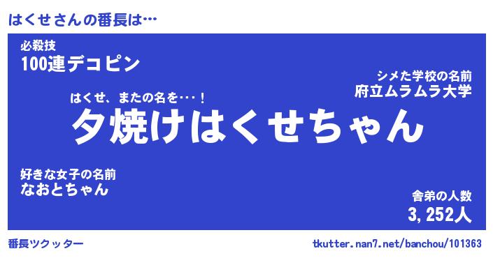 | 意味不明あだ名 | 『ペロリンはくせ』『はくせフォーエバー』 |