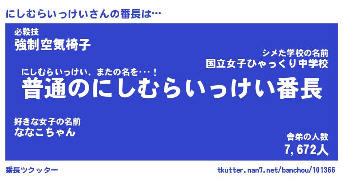 | ポケモン風あだ名 | 『ニシチュウ』『ニシムダネ』 |