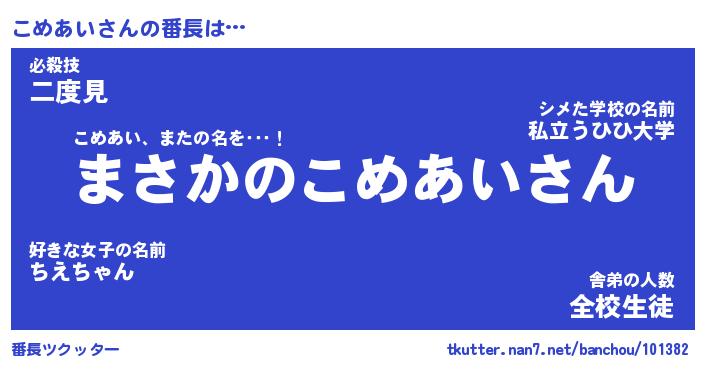 | 意味不明あだ名 | 『ペロリンこめあい』『永久保存こめあい』 |