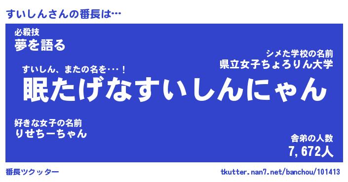 | ピコ太郎風あだ名 | 『スコ三郎』『ピス三郎』『スイ六郎』 |