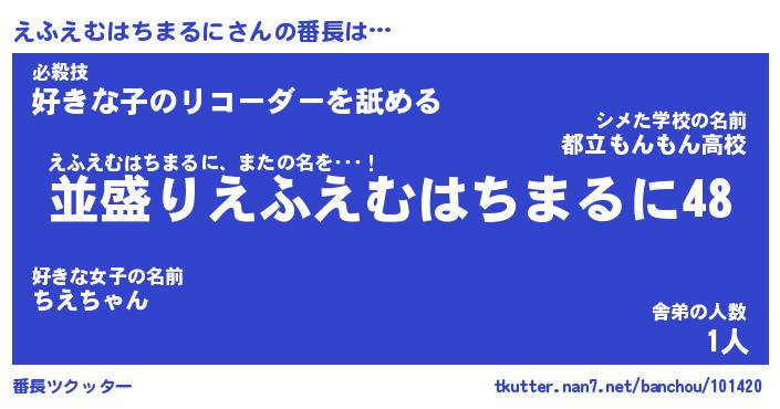 | 2回繰り返すあだ名 | 『えふえふ』『ええふふ』『ぬめぬめ』 |