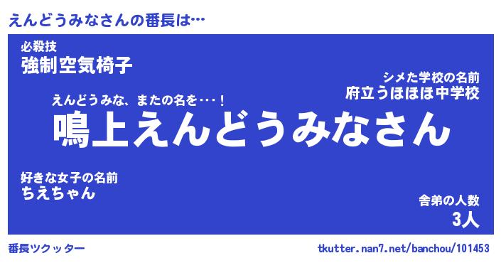 | ヒーロー風カッコイイあだ名 | 『スーパーエンドウミナ』『銀牙騎士エン』 |