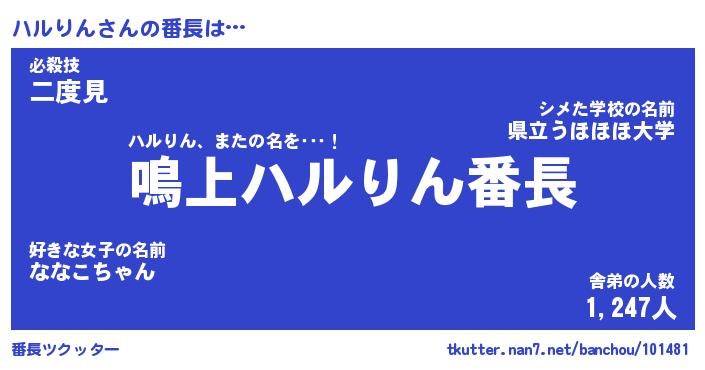 | 意味不明あだ名 | 『ペロリンハルりん』『永久保存ハルりん』 |