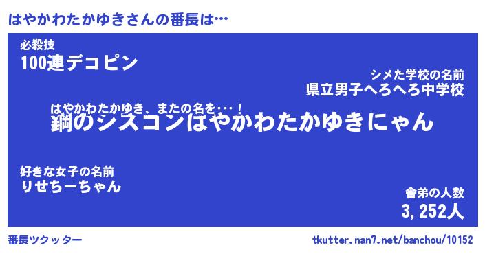 | ヘコむあだ名 | 『はやにー』『つくし』『はやを』 |