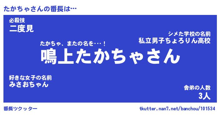 | 意味不明あだ名 | 『ペロリンたかちゃ』『永久保存たかちゃ』 |
