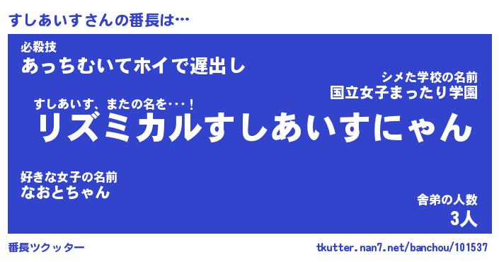 | 肩書あだ名 | 『すしあいす店長』『すしあいす国家主席』 |
