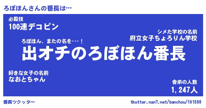 | ヘコむあだ名 | 『ろぼにー』『つくし』『ろぼ太郎』 |
