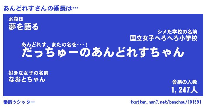 | ポケモン風あだ名 | 『アンチュウ』『アンドダネ』 |