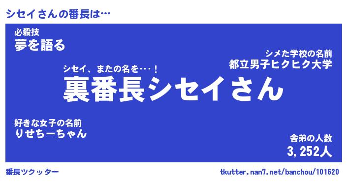 | ヘコむあだ名 | 『シセもー』『豆乳』『シセっぺ』 |