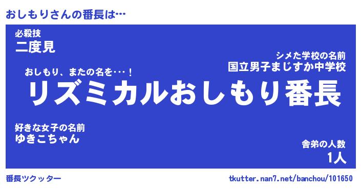 | 男性向けラノベタイトル風あだ名 | 『おしもりの憂鬱』 |