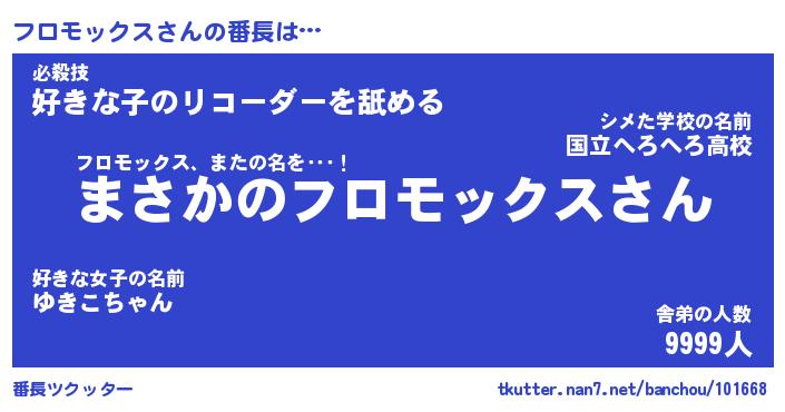 | 肩書あだ名 | 『フロモックス店長』『フロモックス担任』 |