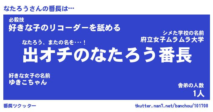 | 意味不明あだ名 | 『ペロリンなたろう』『永久保存なたろう』 |