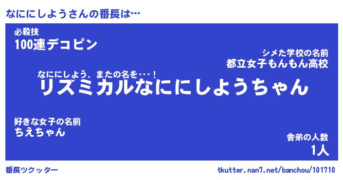 | ヒーロー風カッコイイあだ名 | 『スーパーナニニシヨウ』『天弓騎士ナニ』 |