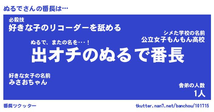 | ポケモン風あだ名 | 『ヌルチュウ』『ヌルデダネ』 |
