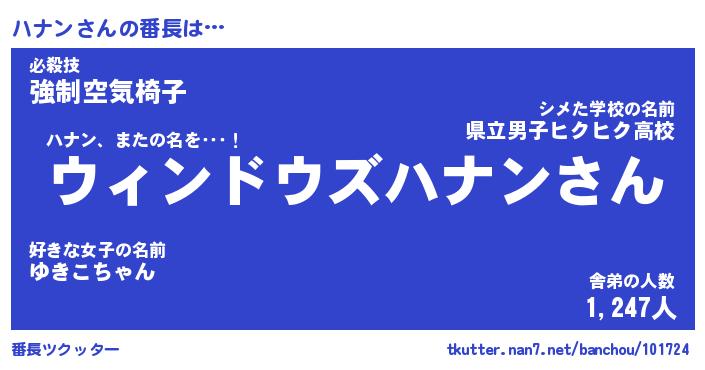 | 肩書あだ名 | 『ハナン社長』『ハナン総理大臣』 |