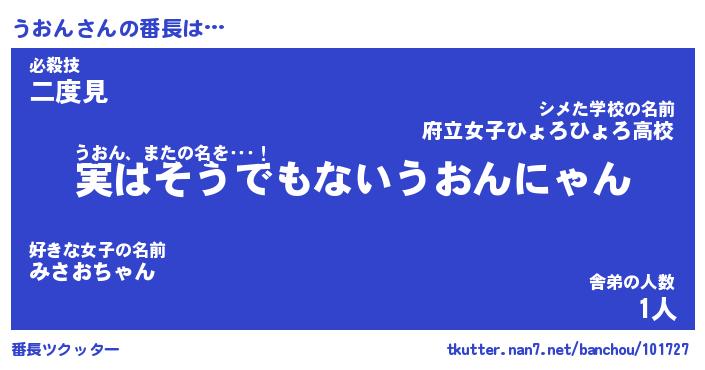 | 自動車の名前っぽいあだ名 | 『ウオティマ』『ウスラー』『デミウ』 |