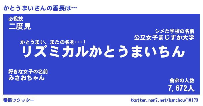 | 伝説のあだ名 | 『伝説のスナイパーかとうまい』 |