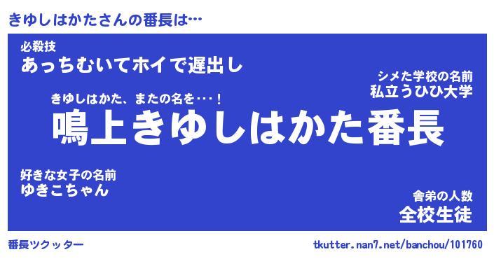 | ヒーロー風カッコイイあだ名 | 『スーパーキユシハカタ』『天弓騎士キユ』 |