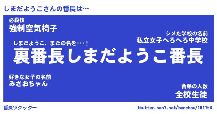 | ピコ太郎風あだ名 | 『シコ八郎』『ピシ次郎』『シマ五郎』 |