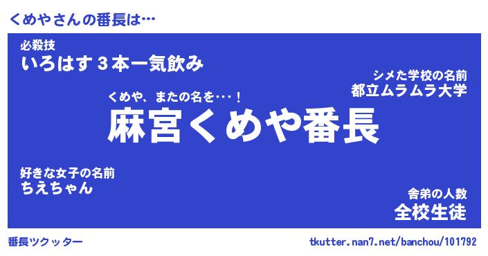 | 肩書あだ名 | 『くめやCEO』『くめや大統領』 |