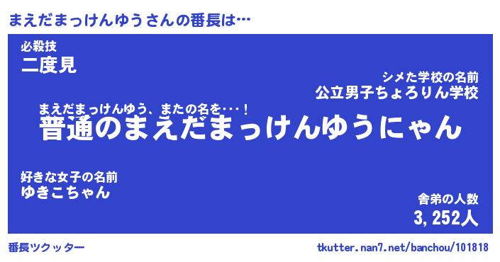 | 男性向けラノベタイトル風あだ名 | 『まえだまっけんゆうの憂鬱』 |