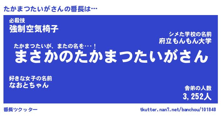 | 伝説のあだ名 | 『伝説のスナイパーたかまつたいが』 |