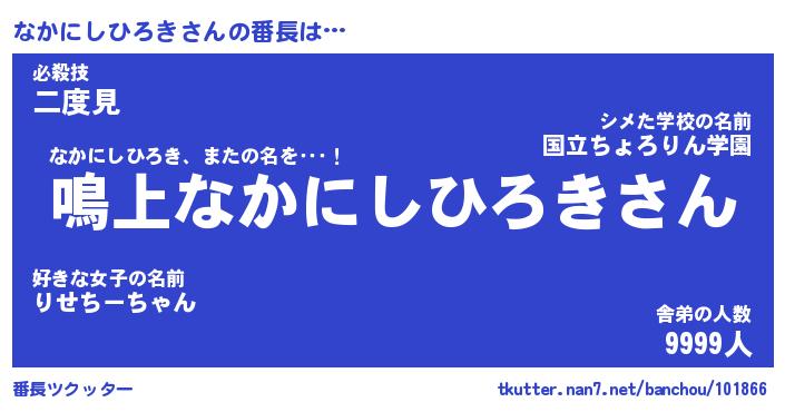 | 伝説のあだ名 | 『封印されしスナイパーなかにしひろき』 |