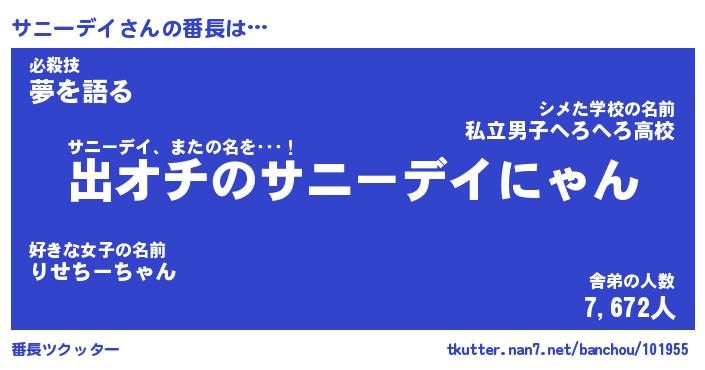 | ヒーロー風カッコイイあだ名 | 『スーパーサニーデイ』『炎刃騎士サニ』 |