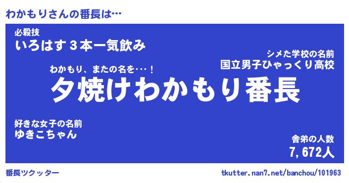 | 伝説のあだ名 | 『封印されしスナイパーわかもり』 |
