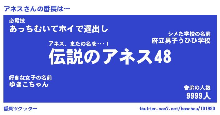 | ヒーロー風カッコイイあだ名 | 『スーパーアネス』『ウルトラアネスマン』 |