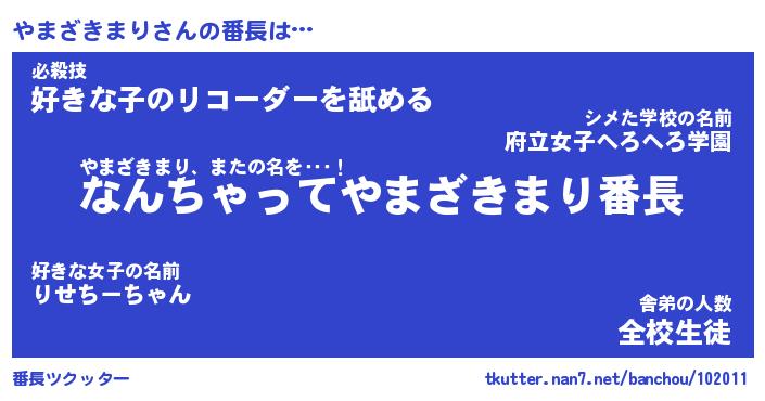 | 2回繰り返すあだ名 | 『やまやま』『ややまま』『うねうね』 |